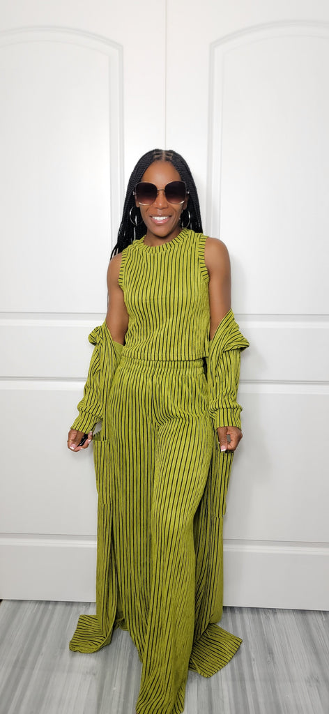 • Includes High Waisted Pant,  Cropped Tank, and Cardigan w/ pockets