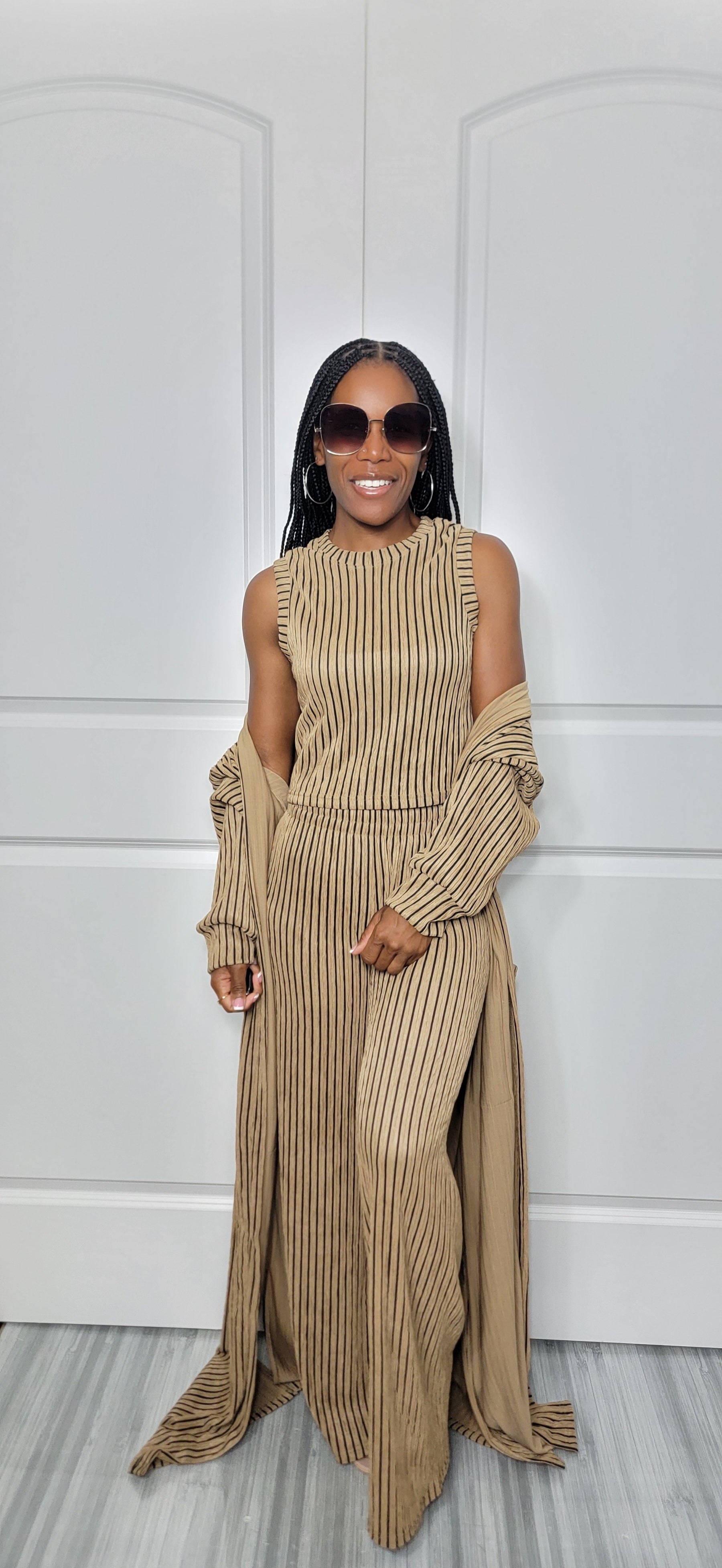 • Includes High Waisted Pant,  Cropped Tank, and Cardigan w/ pockets