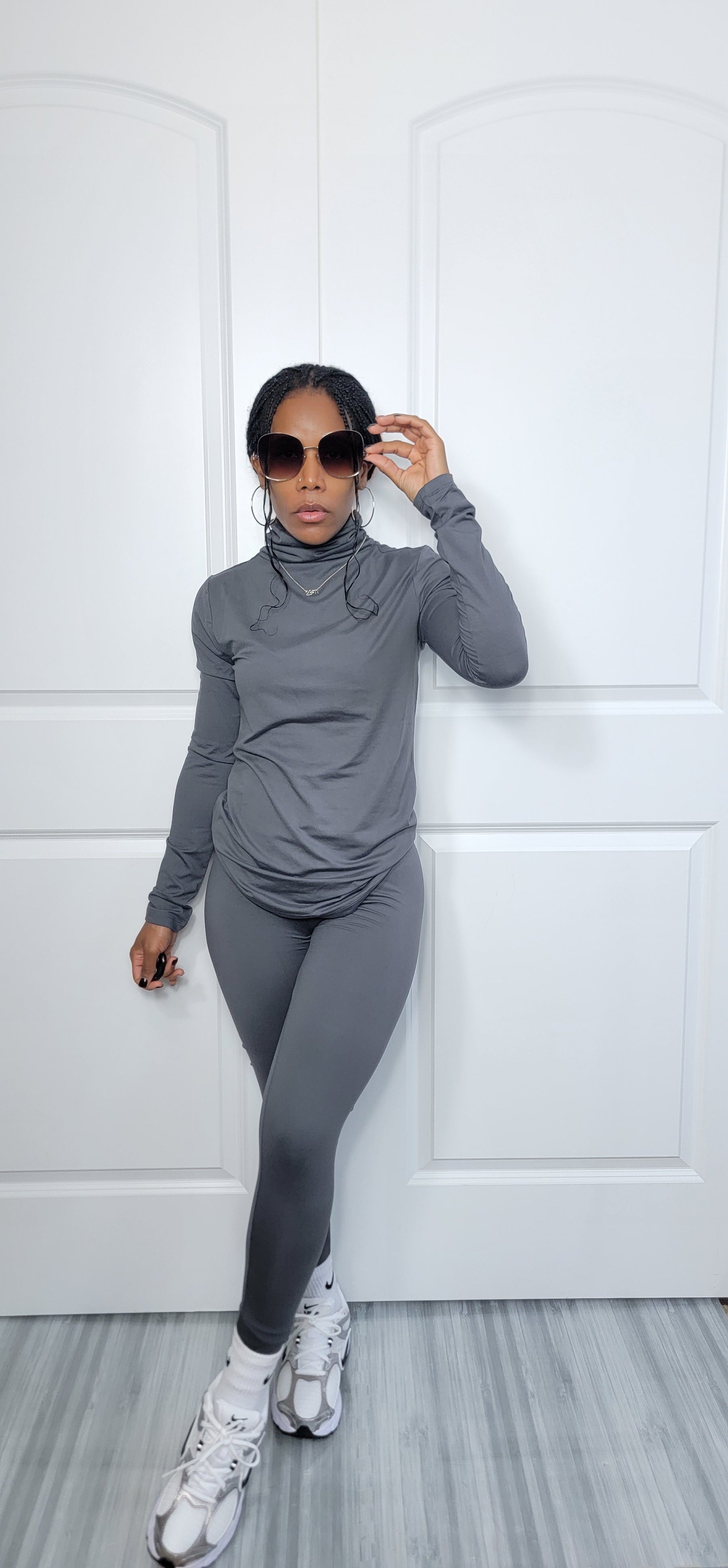 The "Turtle Neck" - Legging Set (Ash Gray) - Small is backordered and will ship as soon as it is back in stock.